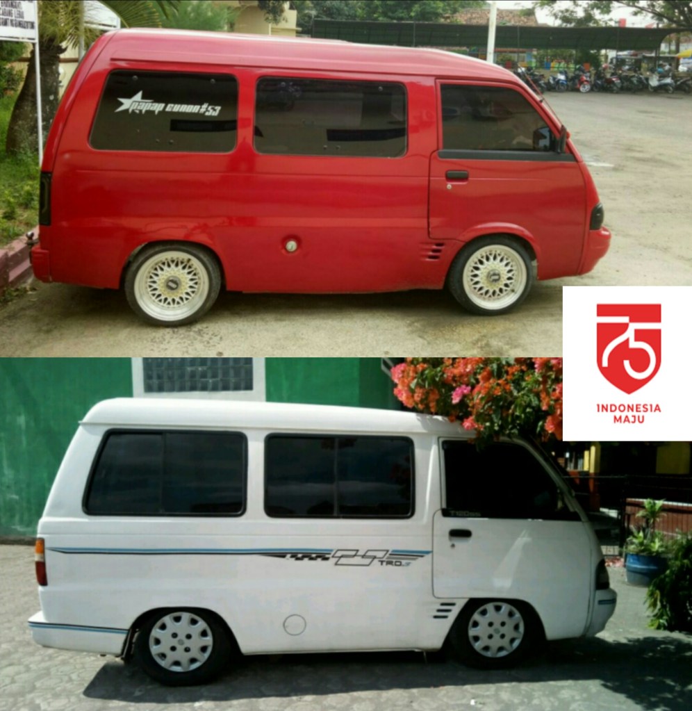 Agak terlihat manis bukan?Dikit tapi yah hehe. Akhirnya saya coba dengan cara ganti per depan memakai punyanya carry1.0 dan mangkok atas pun di balik dengan cara gerinda dikit balikan las kembali minusnya agak menonjol kebagian joknya tapi tidak terlalu masalah, dan 1 lagi harus memakai ban ring 14 agar pas kadang bahkan masih beradu dengan pintu ketika belok padahal memakai velg tidak celong apalagi celong.